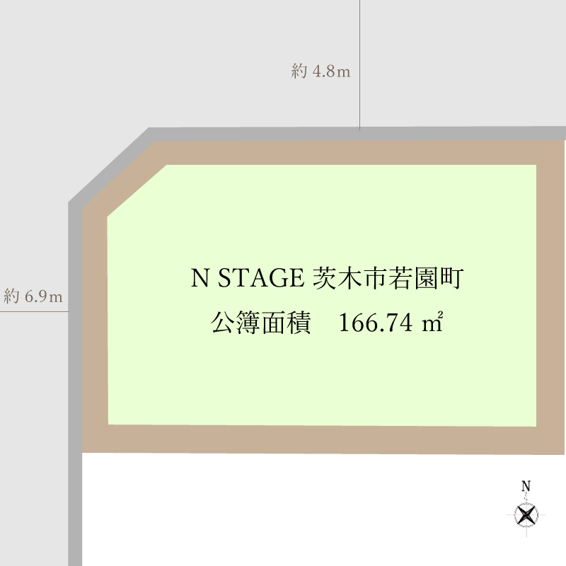 間口 西 約11m・北 約15.7m 幅員 西 約6.9m・北 約4.8m
